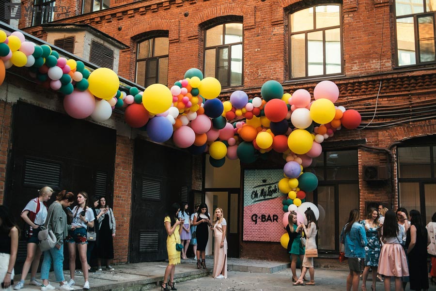 Новый тренд – соединение искусства и декора, инсталляции, которые органично вплетаются в площадку и становятся ее продолжением. Десятки шаров, высыпающихся из камина и «улетающих» в окно или «воздушное» небо под потолком – границ для воображения в этом виде декора нет.