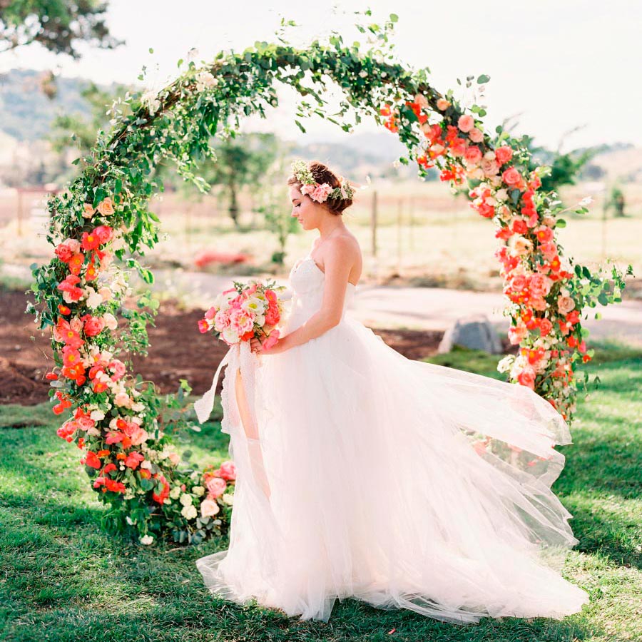 Огромные конструкции в форме кольца вошли в моду недавно, но уже покорили сердца сотен невест. Это самая лучшая идея для красивых фотографий, хотя и достаточно дорогая.
