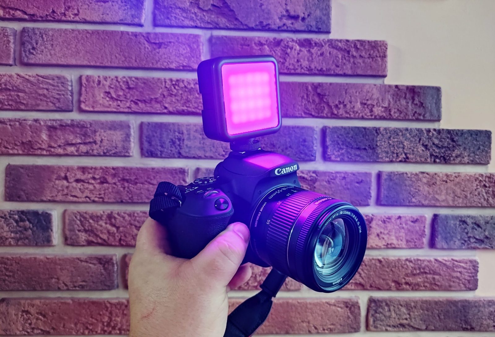 Светильник имеет небольшие размеры 65*65 миллиметров без учета кронштейна для фиксации, при этом вес устройства составляет всего 100 грамм. Небольшой вес, на мой взгляд, является неоспоримым преимуществом, поскольку устройство не будет нагружать ни камеру, ни другое оборудование.